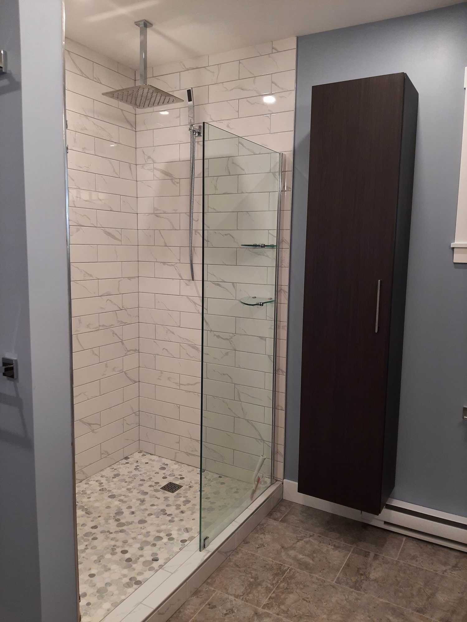 - Bathroom boasts double vanity, custom walk-in shower, in-floor heating and great storage.